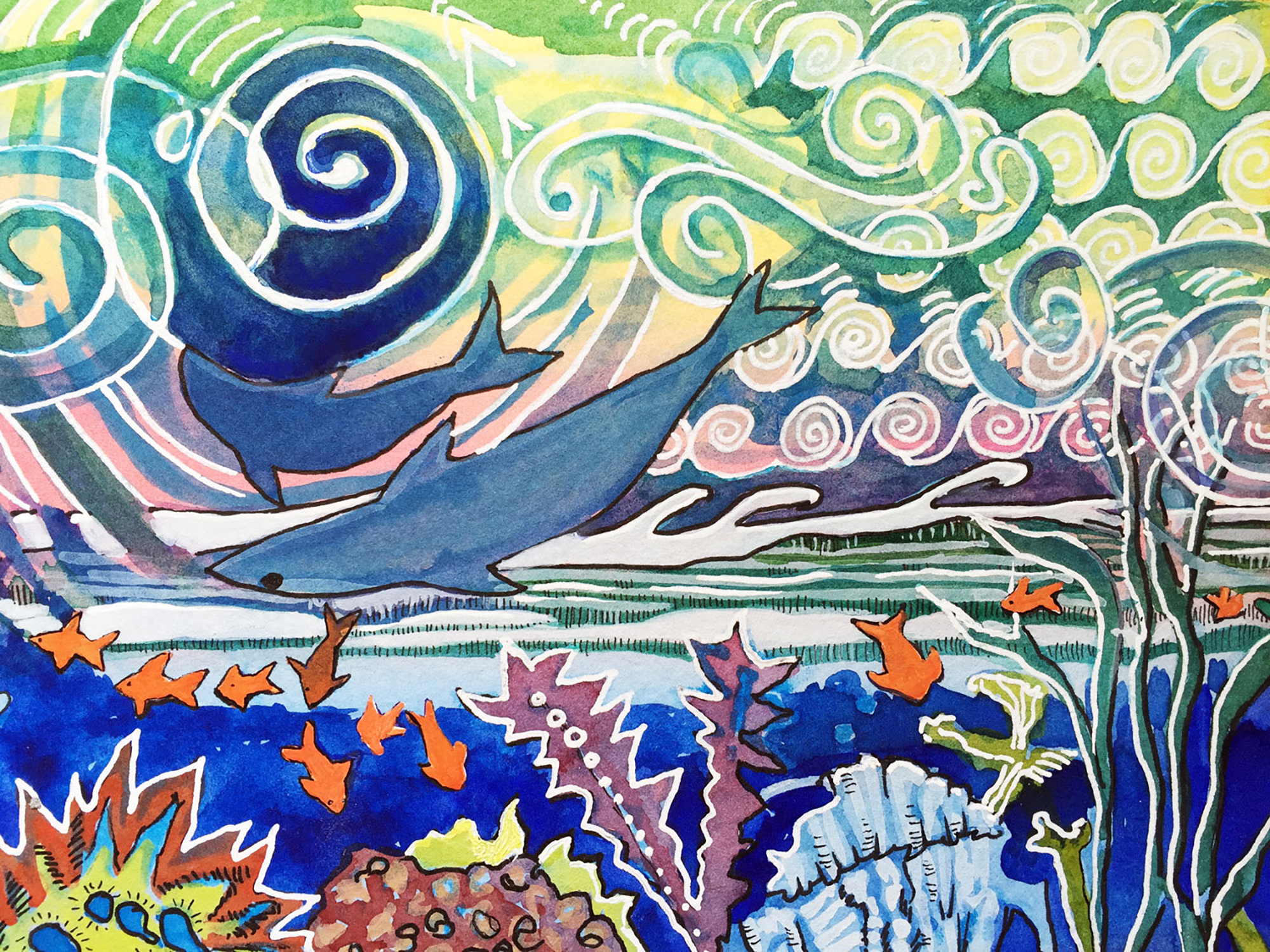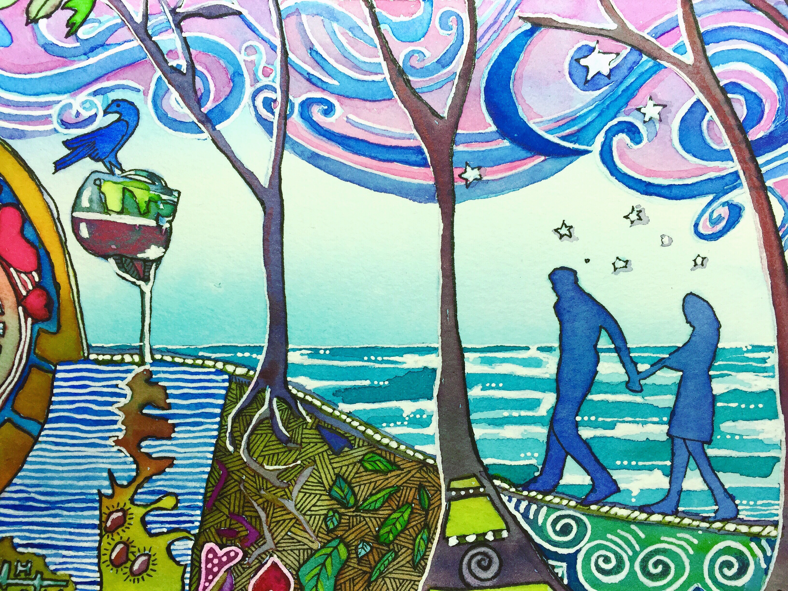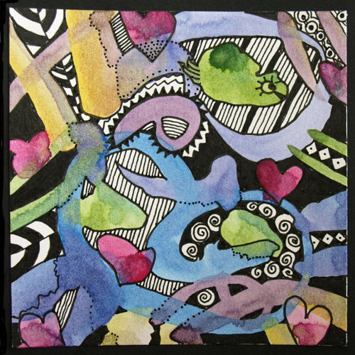Brilliant colors interacting with each other is the core of the technique, followed by mindful drawing. The goal is to be present in the moment, let go of expectations and enjoy the creative process. The art of Kumomi™ is a powerful form of meditative art which is known to increase a sense of well being and for enhancing creativity. Let me help you discover or reclaim your creative spirit through the art of Kumomi. Please contact me for more information.